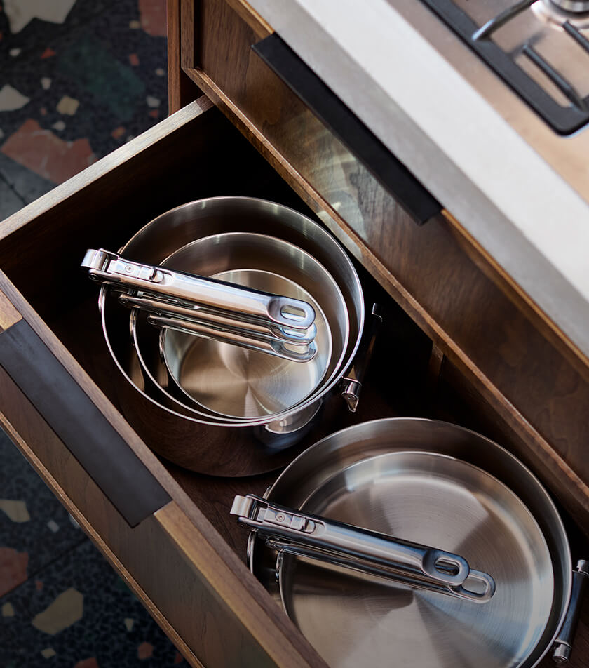 Space Steel Folding Handle 3-Piece Saucepan Set