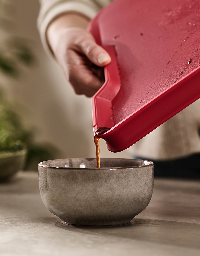 Available in two sizes, Chop2Pot™ is knife-friendly and non-slip when laid flat, and it comes in a variety of colours. This unique concept is also available in natural bamboo, offering a denser surface for chopping on while maintaining the clever folding design.