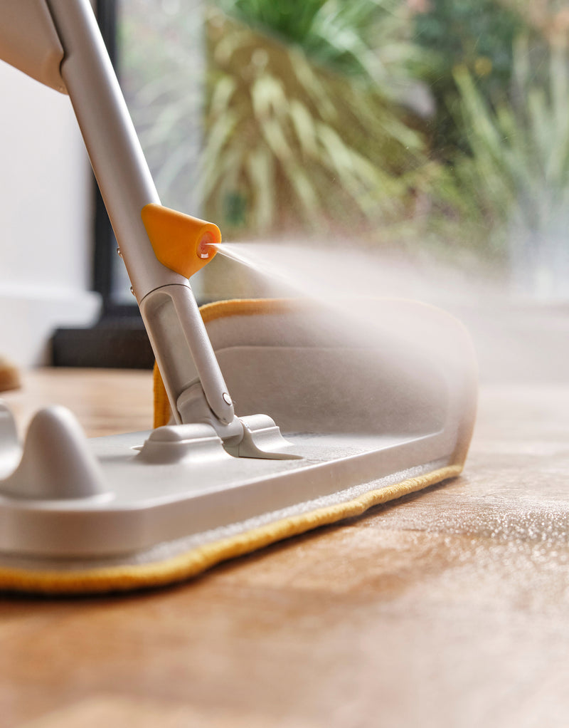 The best way to clean laminate floors is to sweep up any dust and dirt first using the Joseph Joseph CleanStore Dustpan and Brush or CleanStore Broom, then follow up with a thorough mop using your chosen floor detergent and hot water once or twice a month. The best mop for laminate floors is a mop with a microfibre pad, such as our CleanTech 2-in-1 Spray Mop which does a brilliant job at washing laminate floors.