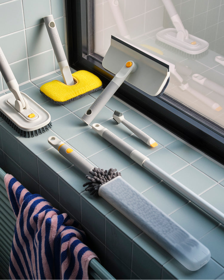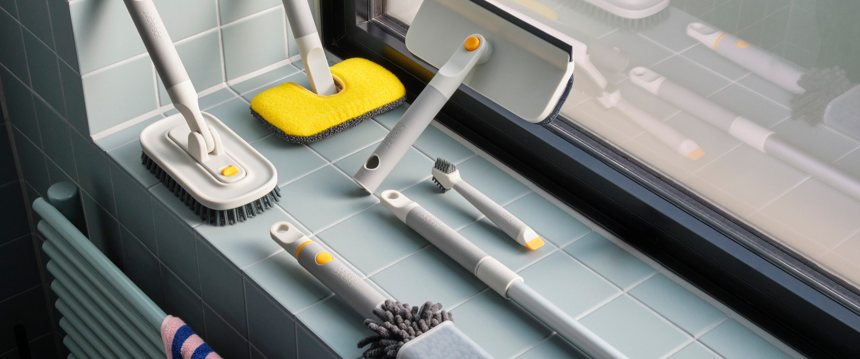 Joseph Joseph’s CleanTech™ cleaning products are designed to make tidying up quick, efficient, and even enjoyable. The CleanTech™ Tile Scrubber with its integrated grout brush helps you tackle multiple surfaces in one go, while the CleanTech™ Spray Mop ensures even distribution of moisture for safe, effective floor cleaning.