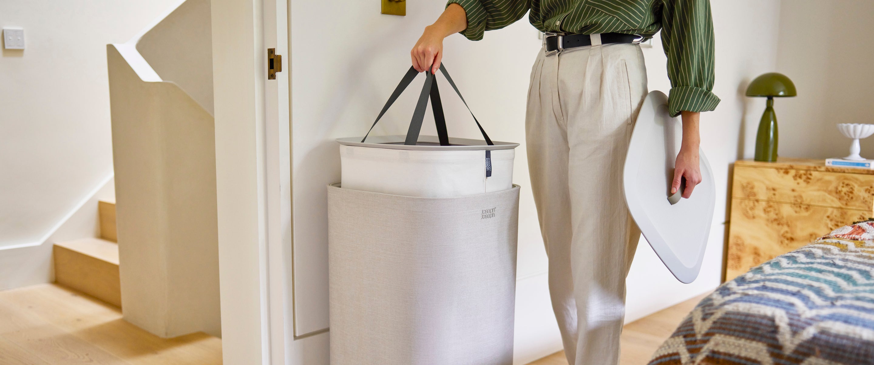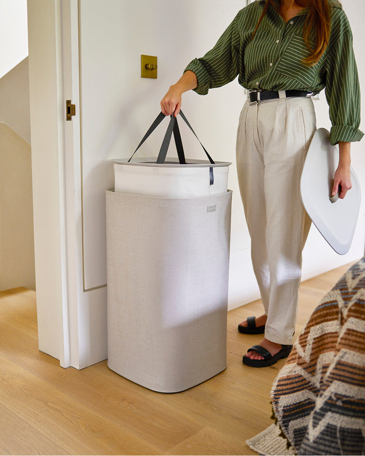 Joseph Joseph laundry baskets come in durable, high-quality fabric or plastic materials (cotton and polyester) that are designed to last, even with frequent use.