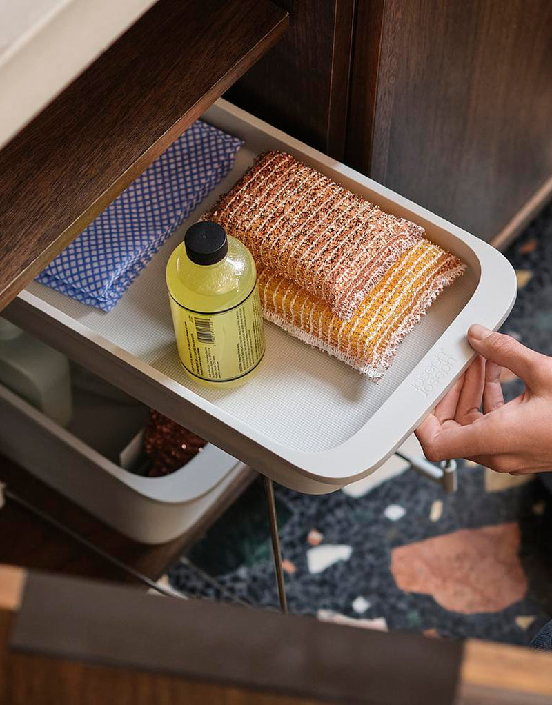 Joseph Joseph’s space-saving designs simplify kitchen organisation. Our products, like the Droplet Compact Colander and CleanTech™ Pole Organiser, make it easy to keep things neat and tidy. By maximising space, you create a more efficient and enjoyable cooking experience.