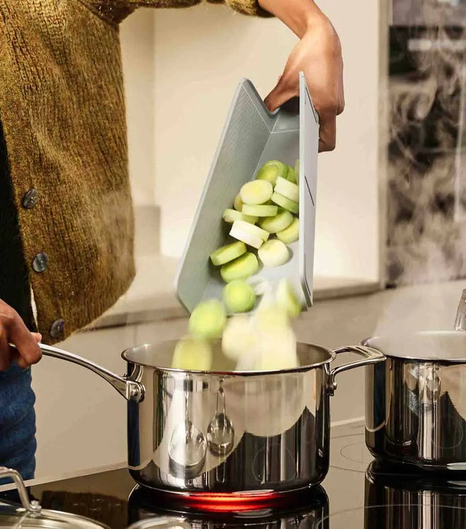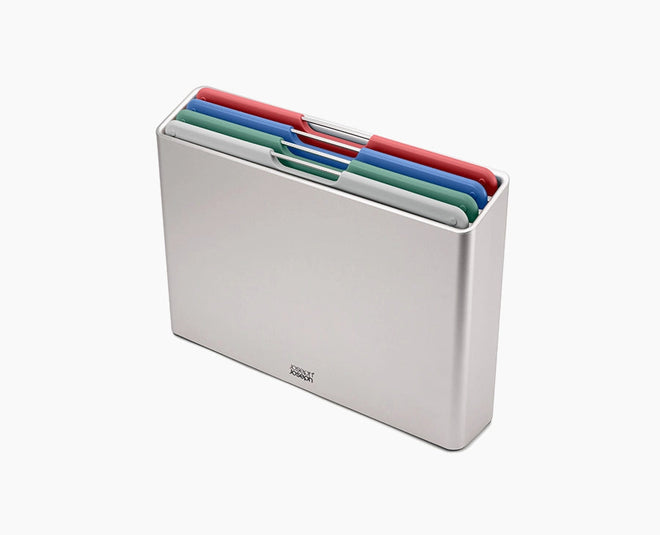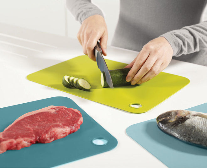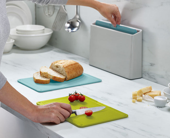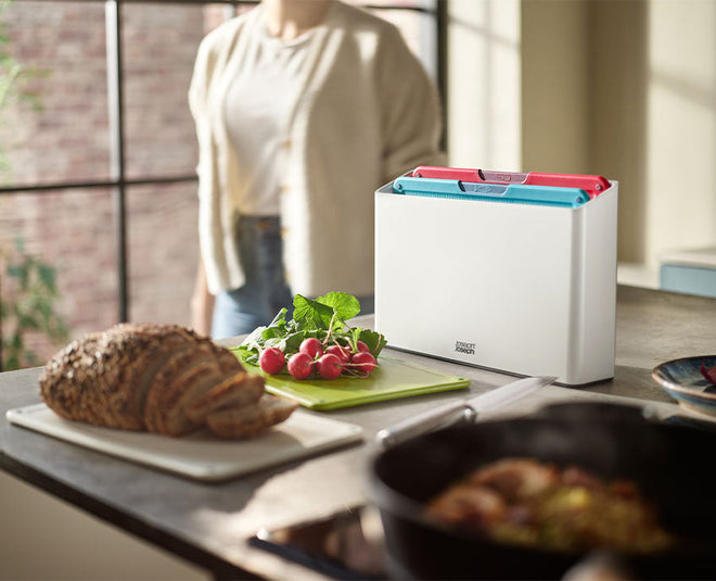 Behind every great meal there’s a chopping board to help with the food prep, which is why we’ve been designing and innovating chopping boards for the past 20 years. Whether you favour a colour-coded set for hygienic food prep, a folding board for easy food transfer or a double-sided model to help with the Sunday roast, each chopping board in our range is designed to make food prep quick, easy and hassle-free. What’s more, all our cutting boards are built to last, with textured cutting surfaces and durable, easy-clean materials made to stand the test of time no matter how often you chop. Our chopping board range also includes chopping board sets that store well so you can maximise kitchen counter space. Next time you’re cooking up a storm, make sure it’s a Joseph Joseph chopping board you’re reaching for.
