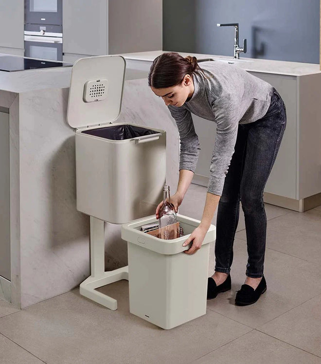Enjoy easy waste and recycling separation thanks to our range of dual compartment bins. Our split bins are perfect for separating different types of waste and recycling and can function as double kitchen bins. Choose from a variety of stylish designs and sizes to suit your needs. Explore our range of Split™ and Totem bins and get yours today.