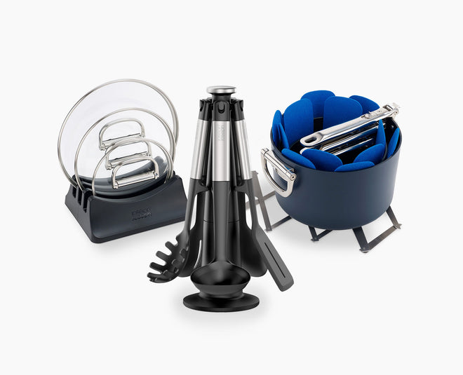 Not all pans are created equal. Upgrade your kitchen with professional-quality pots and pans designed to save space and transform your cooking experience. Our revolutionary saucepans and frying pans are like no other - featuring stainless-steel folding handles, creating up to 50% more space when stored. Finished with a non-toxic, non-stick ceramic coating and oven safe up to 232ºC/450ºF - our cookware can stand the heat in any kitchen. From multi-sized sauté and frying pans, to saucepans and stackable sets – we’ve got all the pots and pans you need.