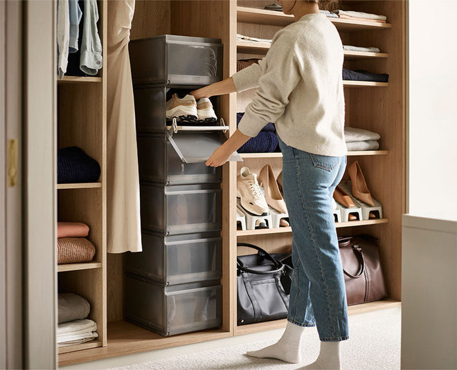 If you're looking for a way to better display and store your shoes, consider our shoe racks at Joseph Joseph. This is a great alternative to single-tier shoe storage to save some space, whether in your hallway or your wardrobes. Available in two sizes to store away up to six pairs of shoes.