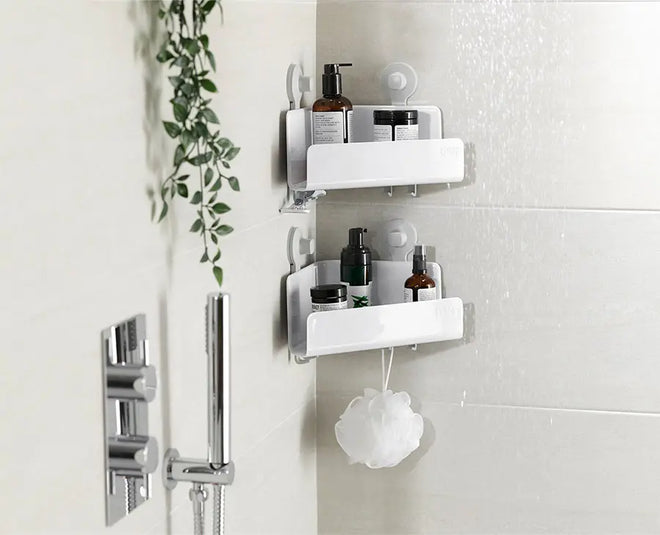 Our shower caddies take the hassle out of shower storage. Whether you're looking for a corner shower shelf or a large shower caddy, you'll find everything you need to store your soap bars, shower gels and shampoo bottles. They also feature hooks for razors, sponges and flannels. Furthermore, explore our useful shower squeegees to help keep your shower walls and doors clean and free of water stains.