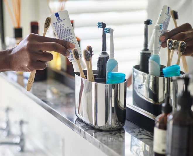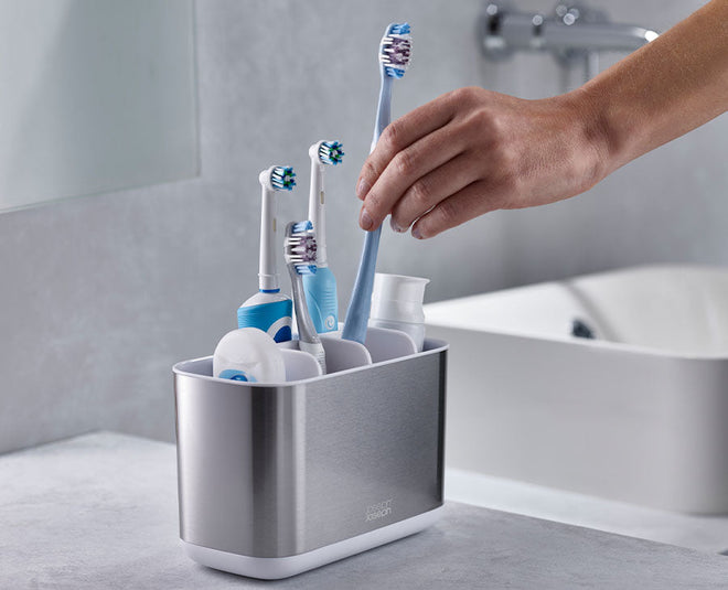 Say goodbye to cluttered bathroom counters with our selection of toothbrush holders. Our toothbrush caddies are designed to be both functional and stylish, with a variety of colours and designs to choose from. Shop now for our toothbrush holder collection and elevate your bathroom organisation.