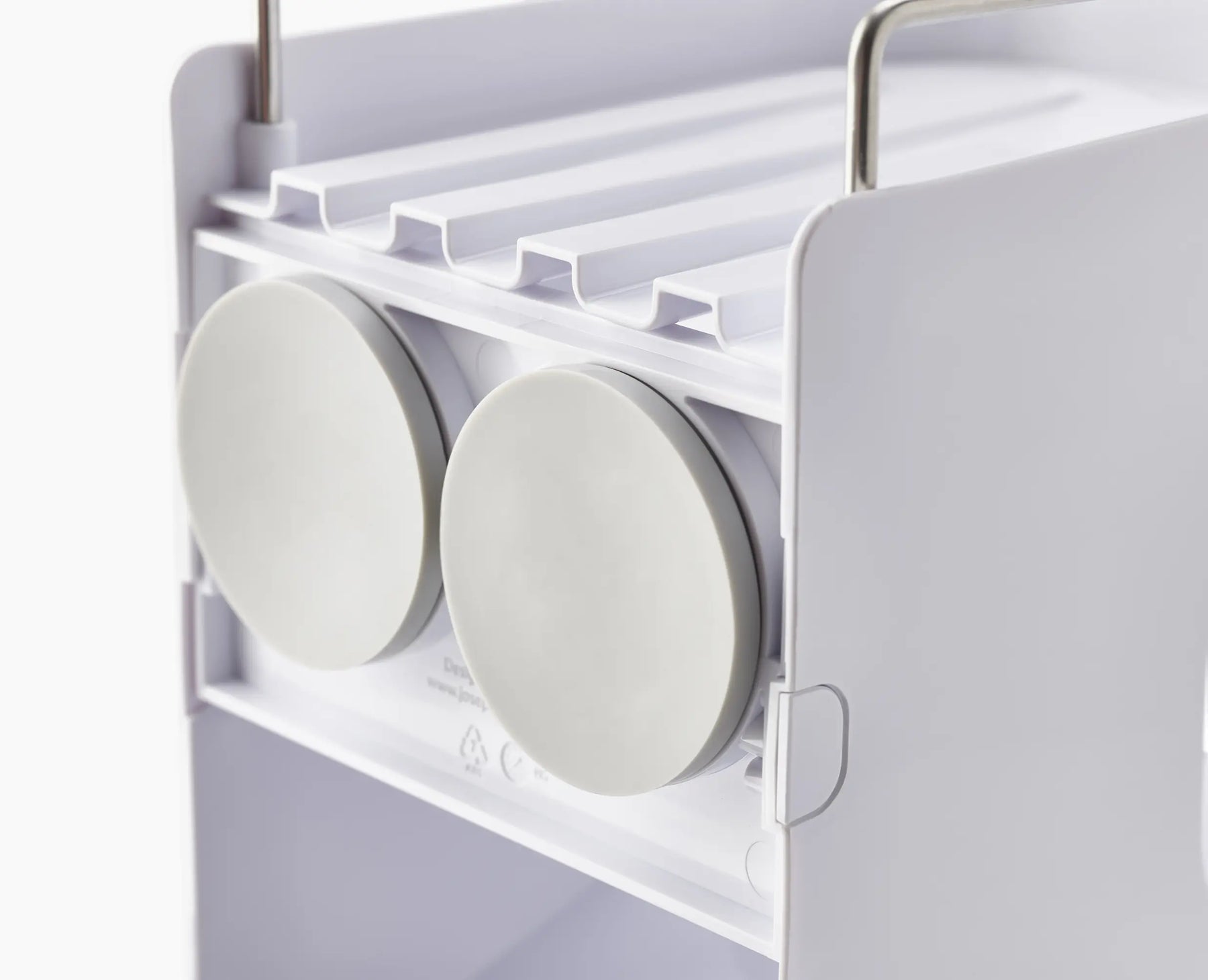 No more shampoos and shower gels fighting for space in a crowded shower tray. Our compact, slimline shower shelf keeps all your essentials in one neat, tidy and easy-reach place. There’s a self-draining top shelf with a stainless-steel rail for soap bars and small bottles, and angled pockets that are ideal for storing larger shampoo bottles and shower gels. Two hanging hooks at the end provide storage for razors and sponges. Capsule™ securely attaches to smooth tiles or glass thanks to its powerful, super-grip suction cups.