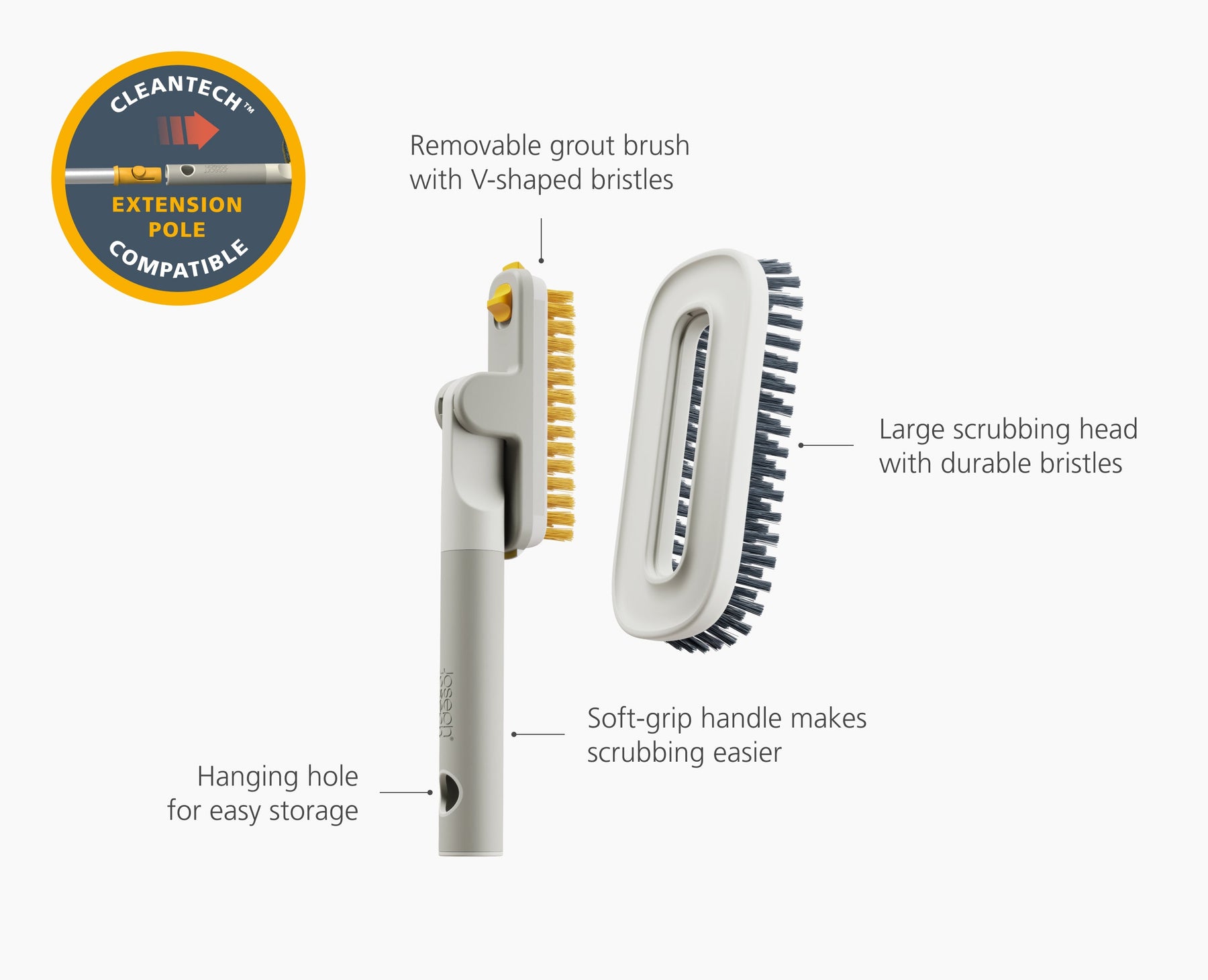 This versatile tile scrubber has a durable scrubbing head with a removable grout brush for deep cleaning, and a soft-grip handle. Compatible with the CleanTech™ extension pole for reaching higher areas.