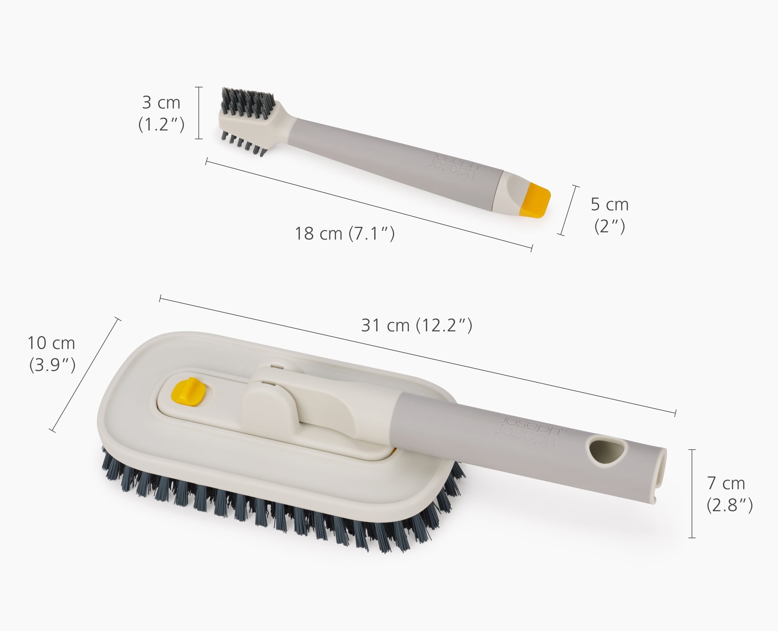 - Set includes: 2-in-1 tile scrubber and 3-in-1 detail brush.