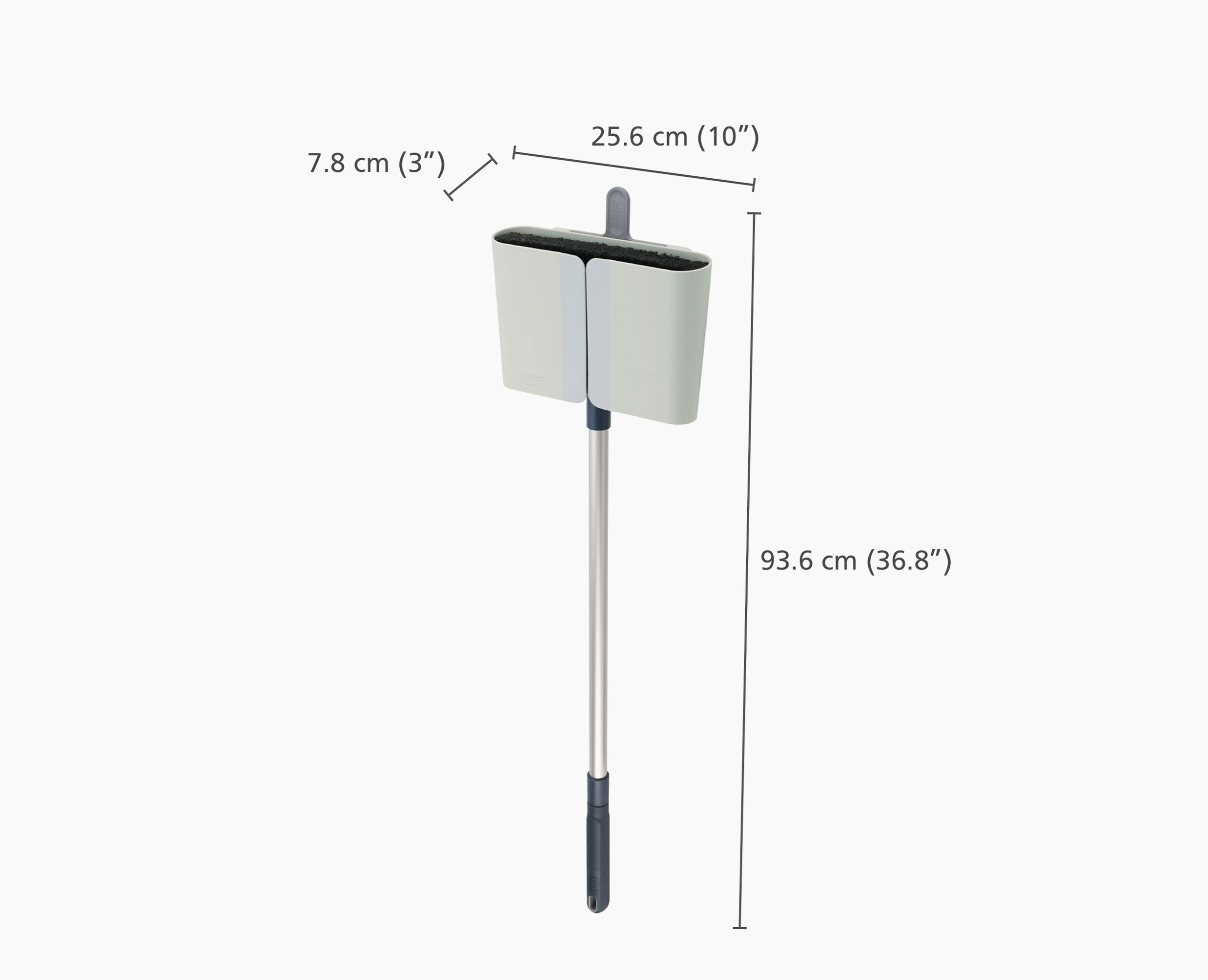 Designed for efficient and tidy storage, this broom features a wall-mounted broom holder with a secure rubber slot to keep the bristles covered and protected. With long, soft bristles, it sweeps dust effectively.