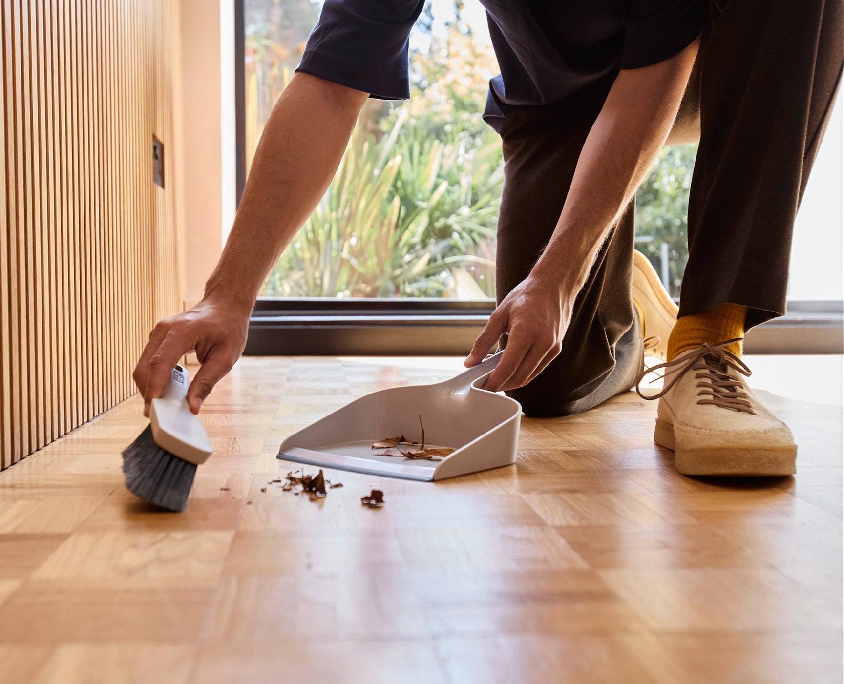 - Brush and pan clip together for organised storage.