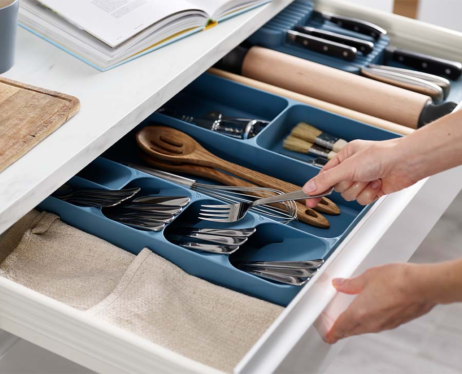 Declutter and organise your kitchen drawers with our clever kitchen drawer storage designs. Whether you're sorting your cutlery, utensils, knives or gadgets, each of our drawer organisers make accessing items easier, whilst also saving space so you can fit more in.