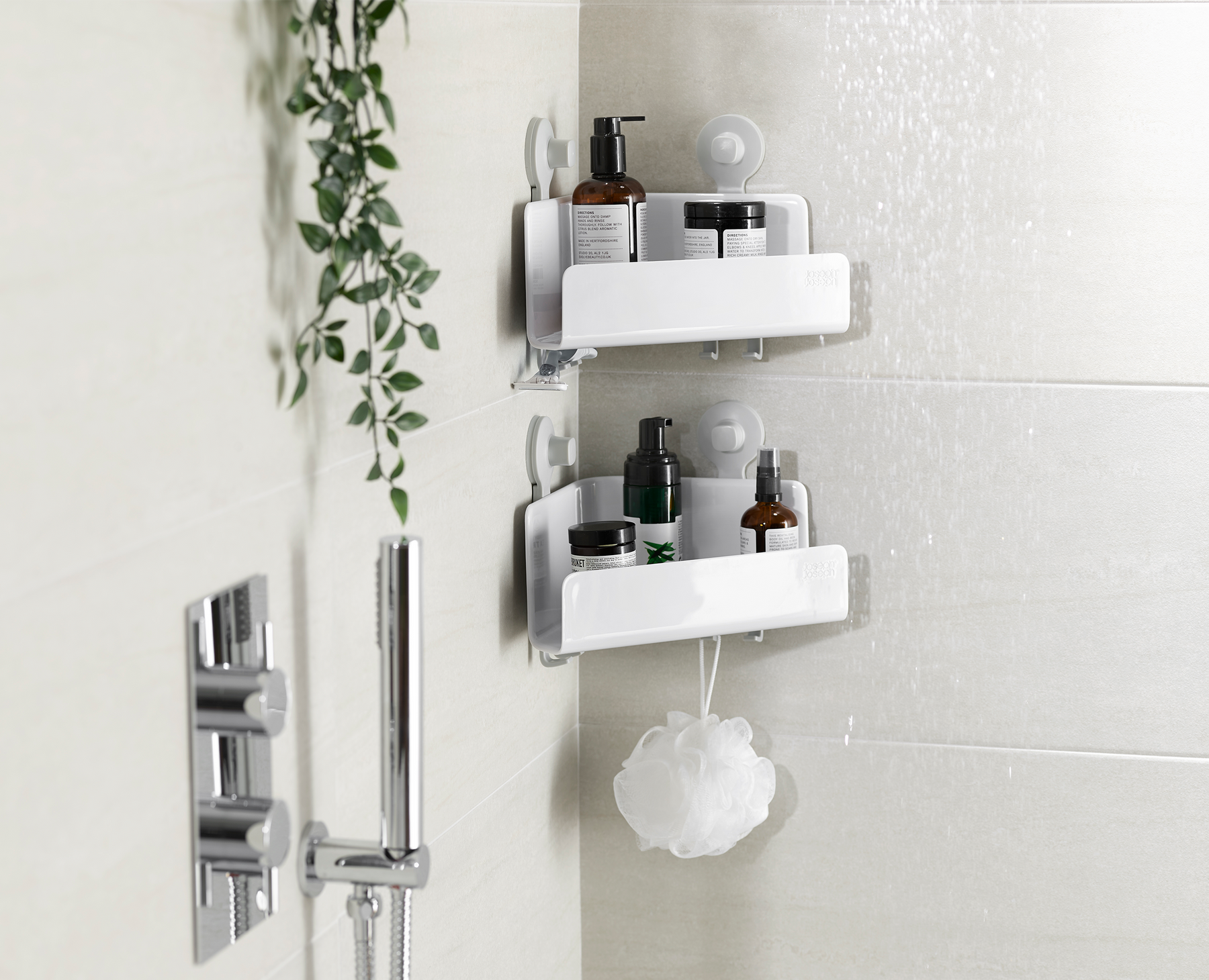 Whether it’s first thing in the morning or just before bed, a shower should be a time to relax and unwind. We designed our EasyStore™ 2-piece Corner Shower Shelf Set to hold all the essentials – soap bars, shower gels, shampoo bottles, razors, sponges and flannels – and leave you with more space and time to lather, rinse and repeat.