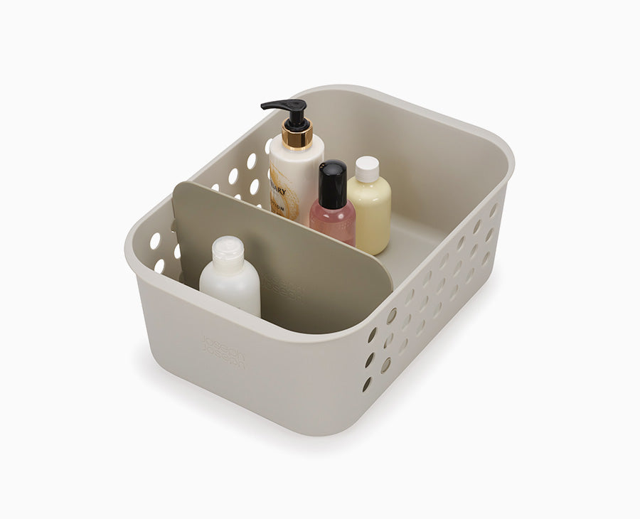 This large bathroom storage basket is great for organising on shelves or inside drawers with deep, ventilated sides for good air circulation.