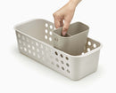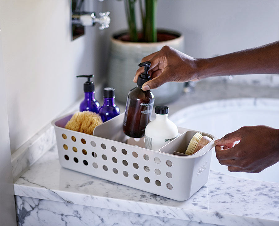 This slimline bathroom storage basket is perfect for organising on shelves or inside drawers and can store various bathroom essentials.
