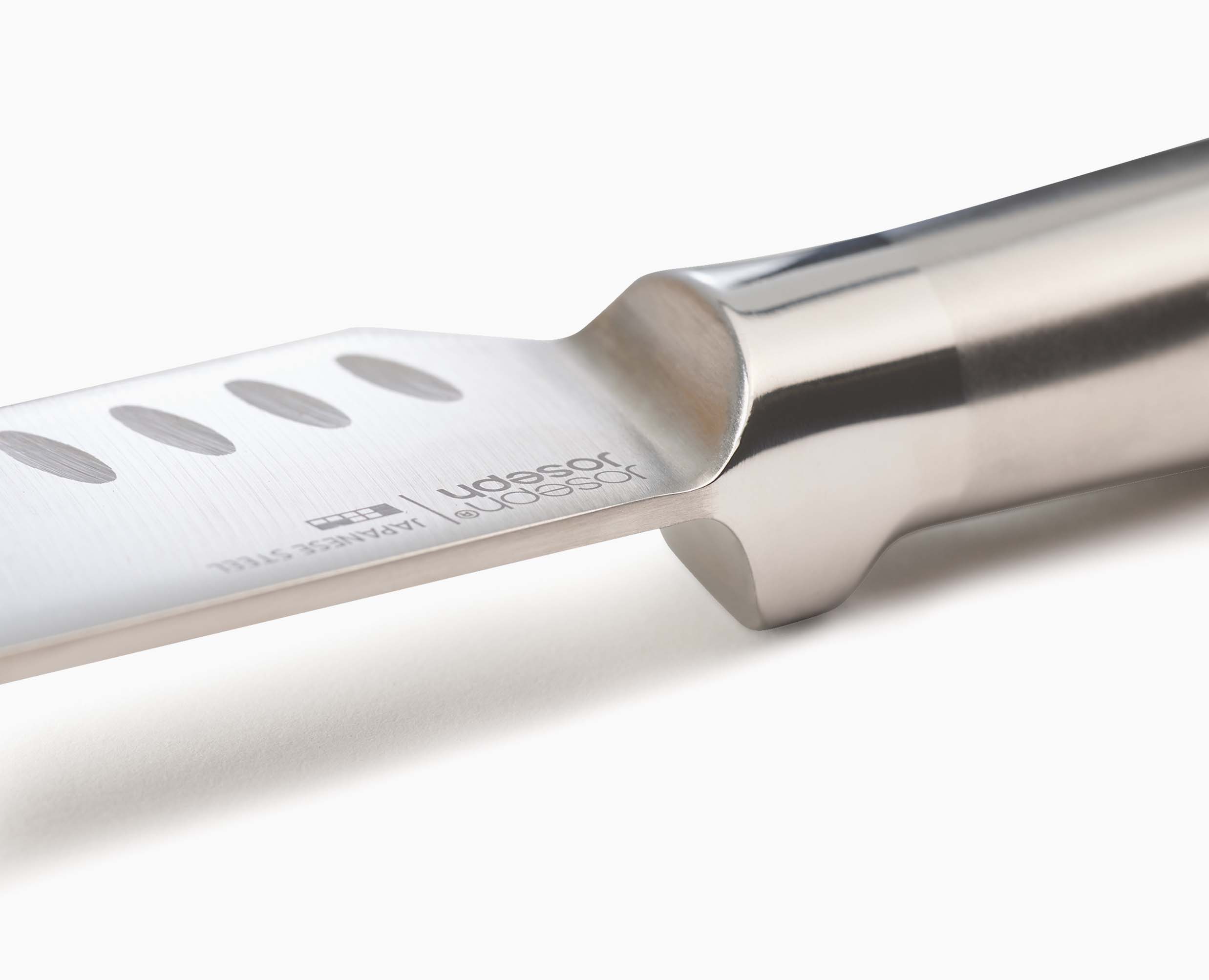 - Set includes 3.5" (9 cm) paring knife, 4.5" (11 cm) serrated knife, 5.5" (14 cm) santoku knife, 8" (20 cm) chef's knife and 8" (20 cm) bread knife
