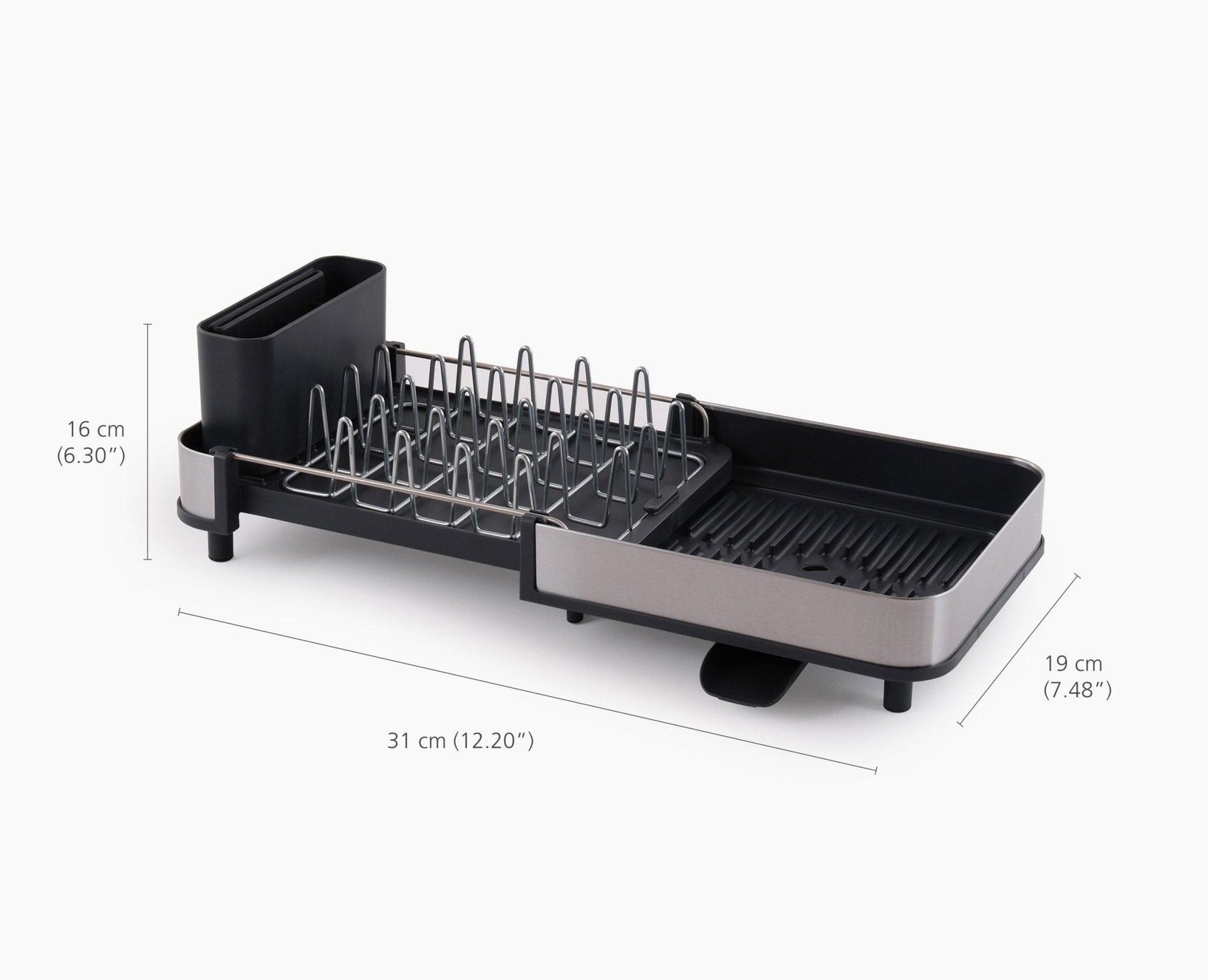 - Sliding tray extends for extra drying space.