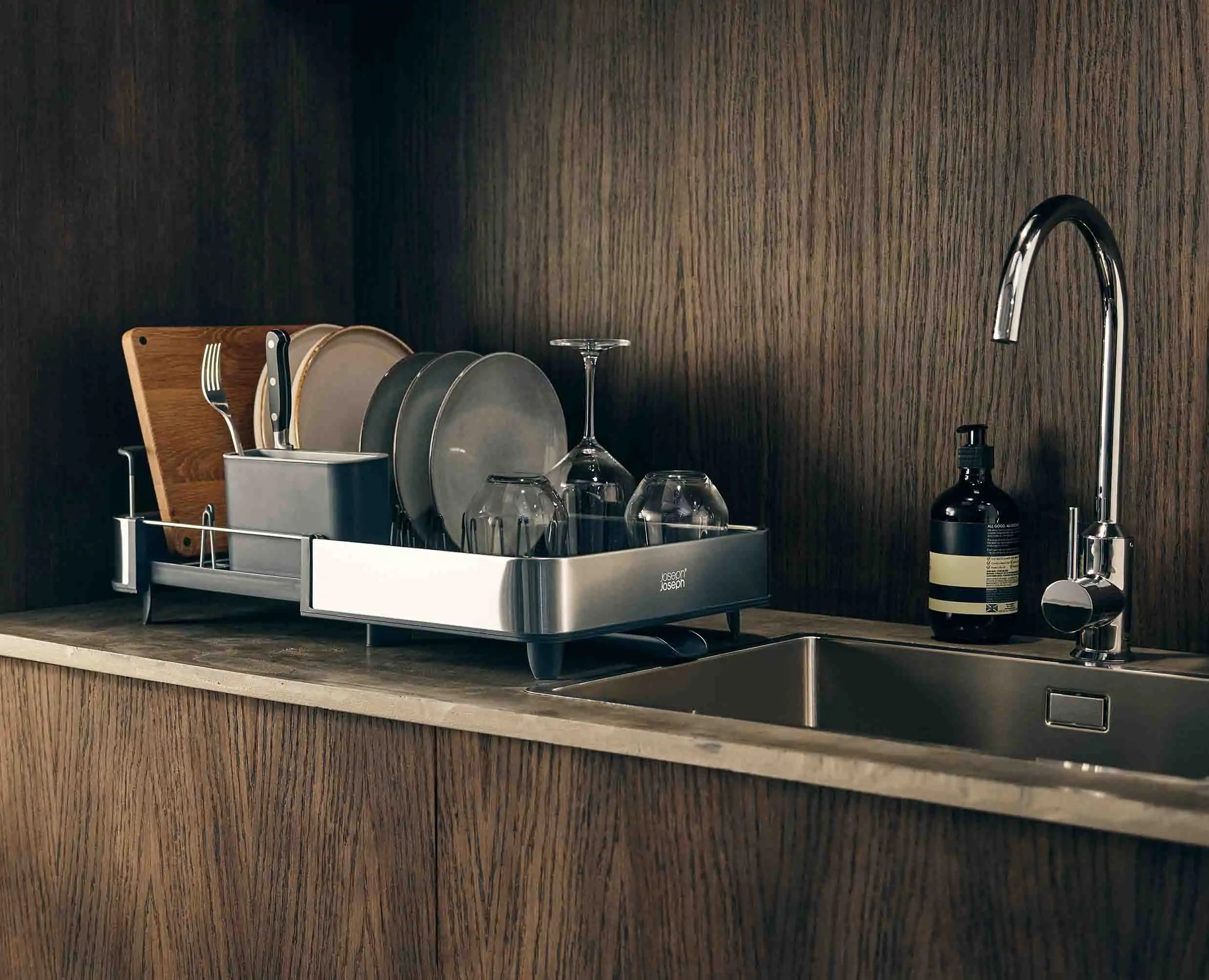 We created Extend™ to make doing the dishes a much easier task. Our expandable dish drainer extends to twice its size to fit more items. What’s more, it has a movable spout to drain water, a dedicated draining space for cutlery and raised ribs that prevent water from becoming trapped under glasses and bowls.