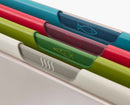 - Set of 4 food-specific, non-slip chopping boards plus slimline storage case