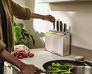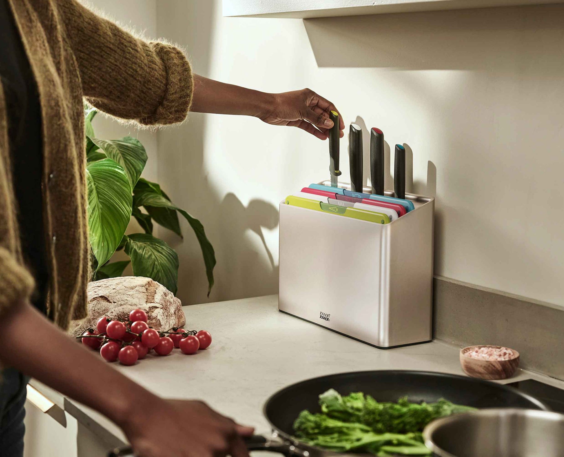 Having multiple boards on hand is convenient, but storage can be a challenge. That's why we designed Folio™. This set of four chopping boards with knives is housed in a sleek case, keeping your worktop neatly organised. Each board has a knife-friendly, textured surface on both sides, while our four Elevate™ knives are made from Japanese stainless-steel and feature integrated tool rests.