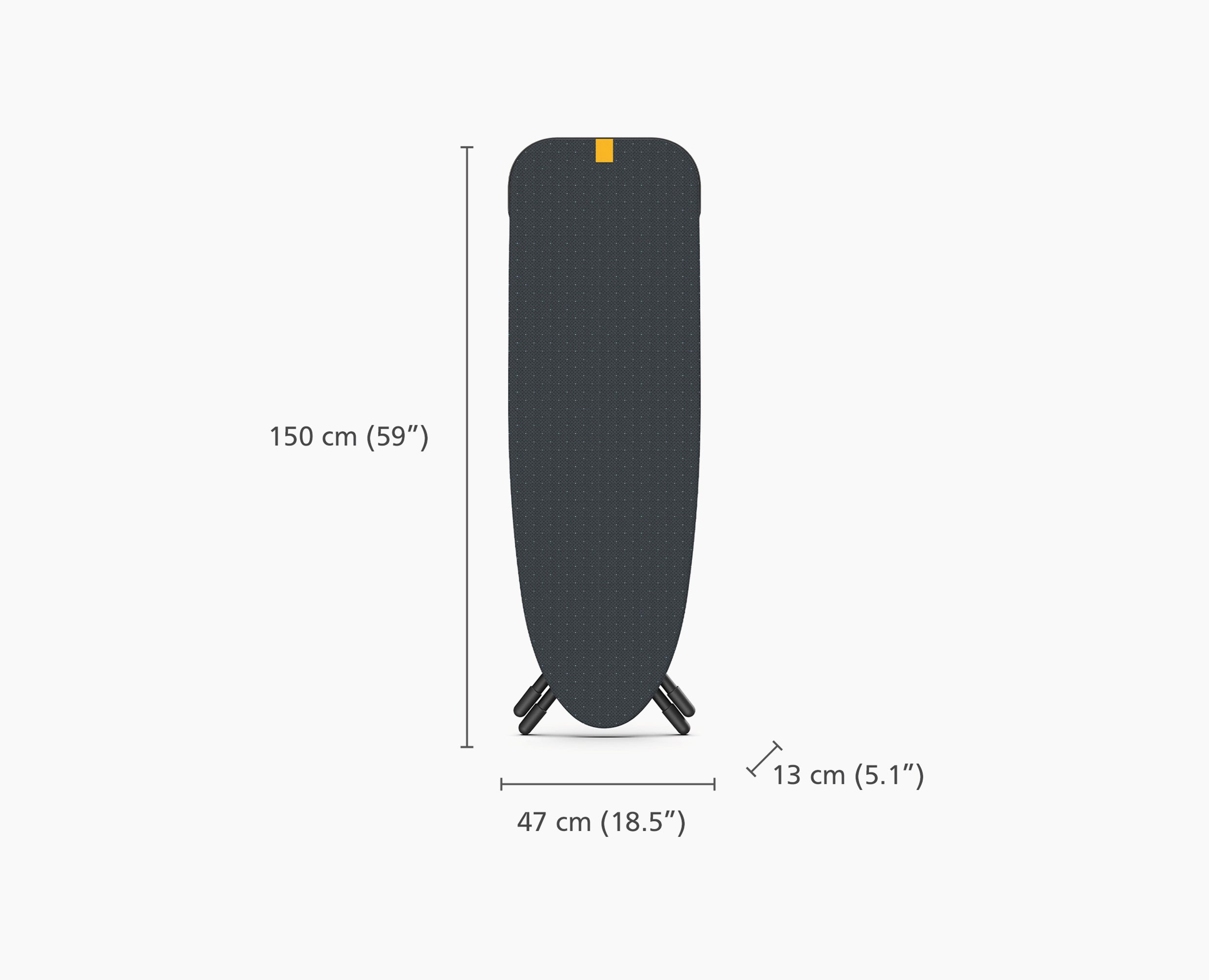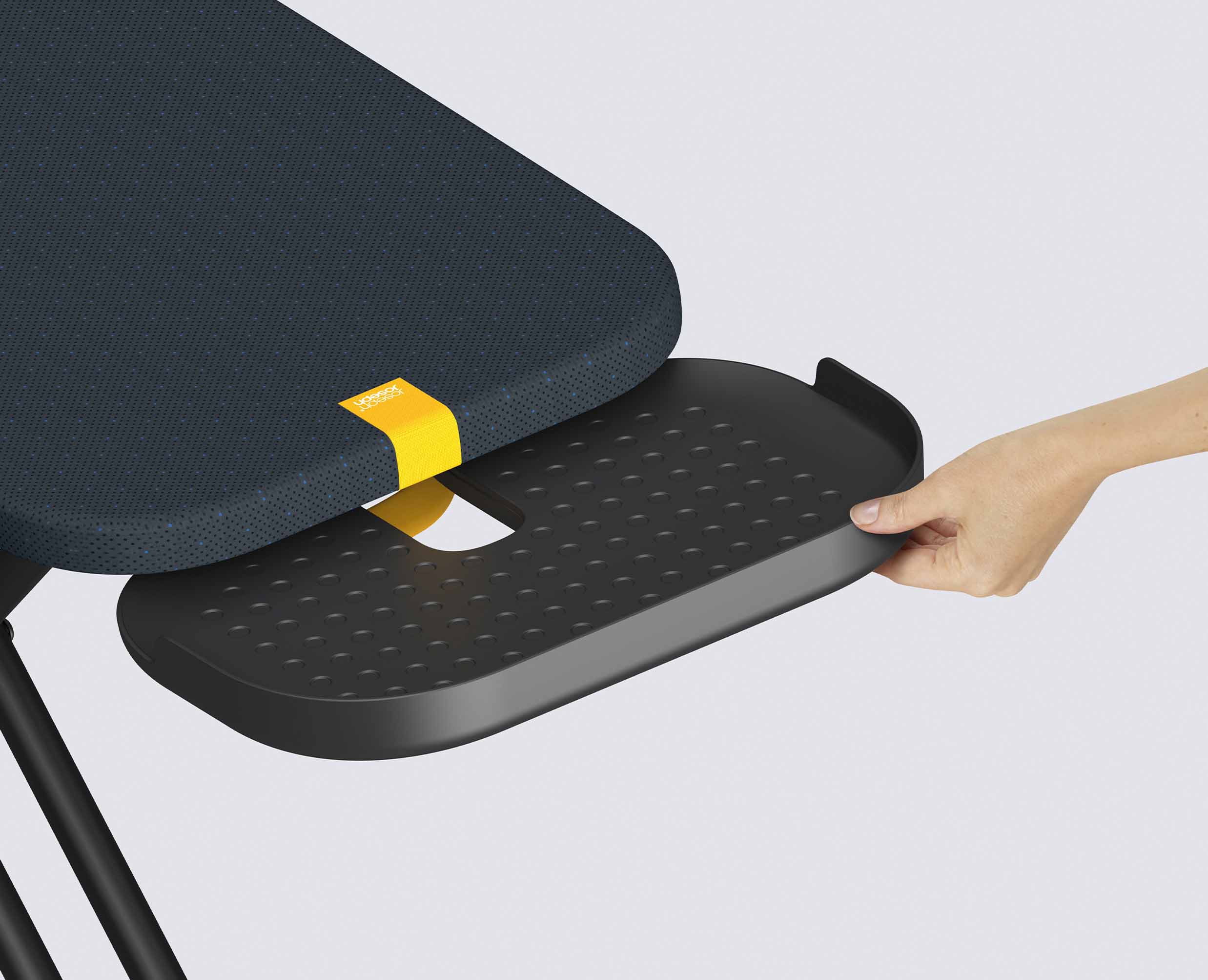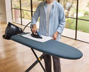 This compact and wide ironing board comes with an advanced, multi-layer cover with DripShield™ Technology that's been designed to cope with large volumes of ironing or for use with steam generator irons. An extra-large steam iron rest can be retracted when stored.