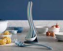 - Set includes: slotted spatula, spaghetti server, slotted spoon, solid spoon and ladle