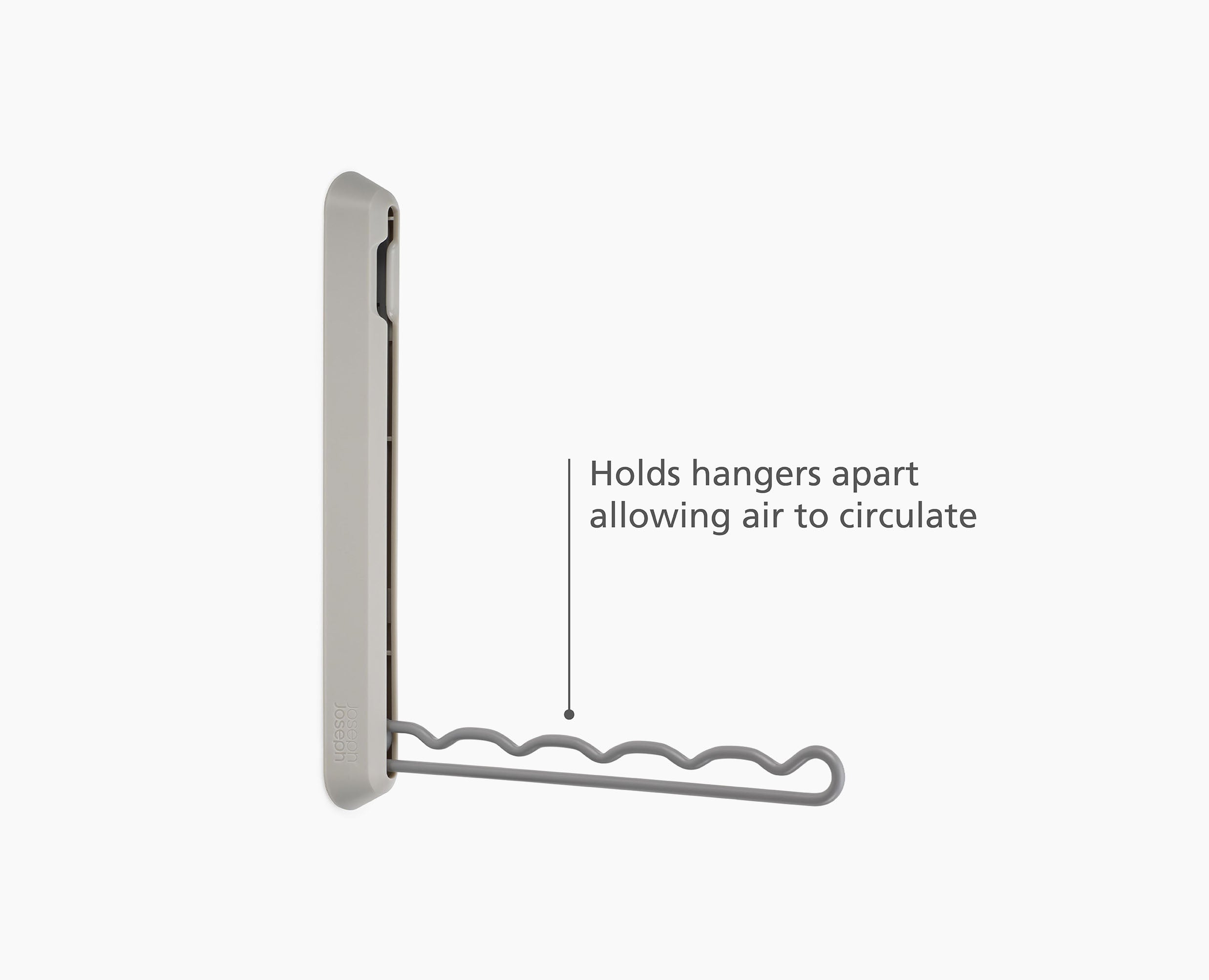 This foldable, wall-mounted clothes rail can be easily attached to a wall or door to create temporary hanging space – ideal for drying or ironing clothes on laundry day. Easy to install, the rail has enough space for five standard coat hangers and neatly folds away after use.