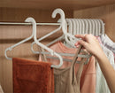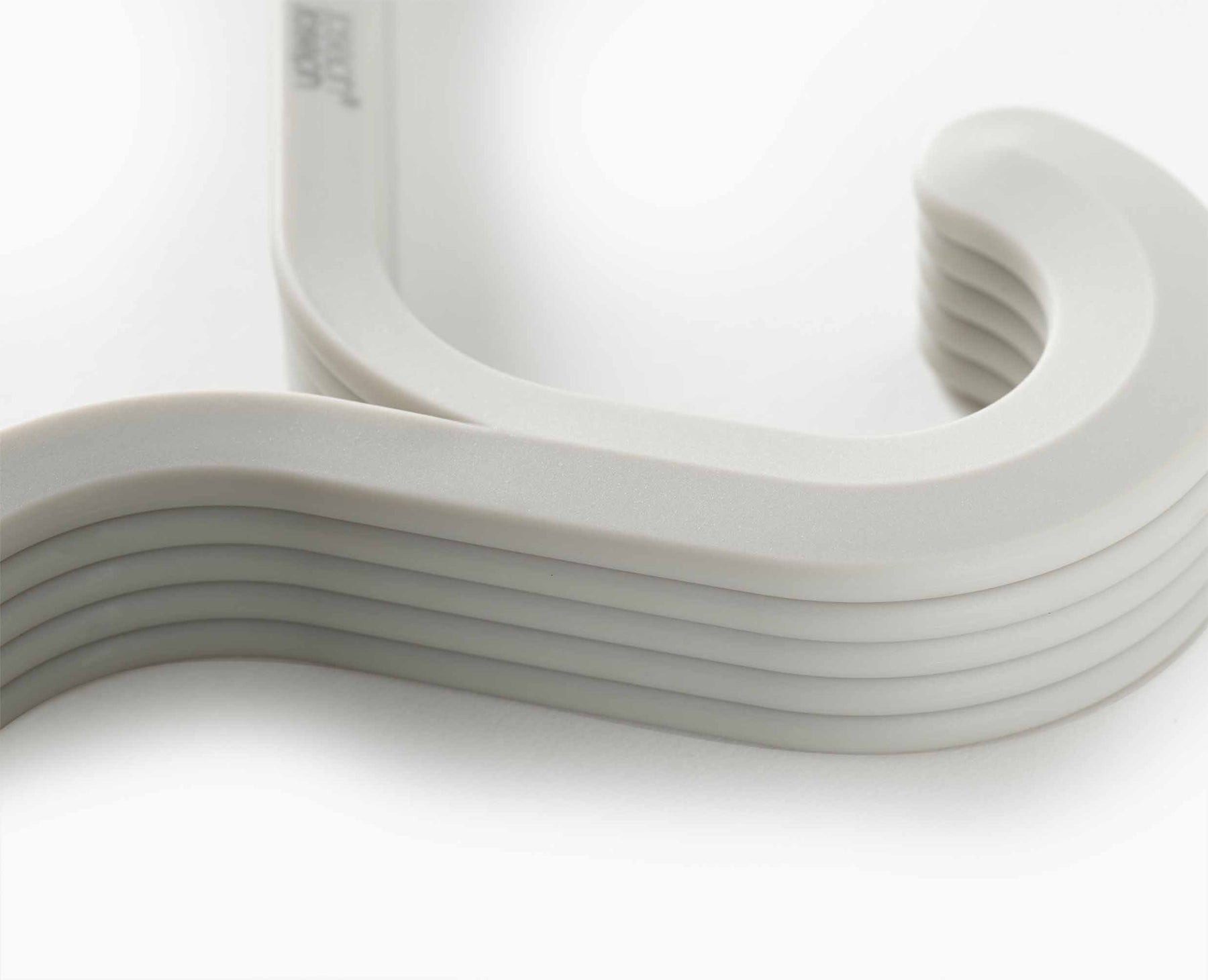 This 5-pack of non-slip hangers prevents clothes and hangers tangling together in your wardrobe. Designed with extra-large, anti-tangle hooks that won't overlap and snag, they also feature non-slip grips on the shoulders and strap hooks on each side to keep clothes in shape and stored in place.