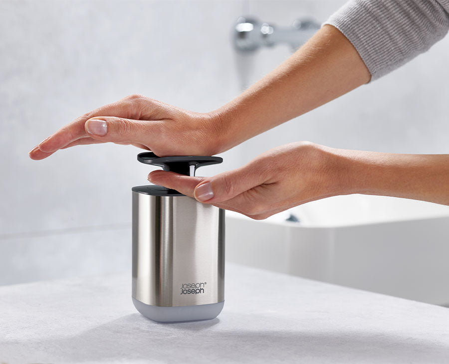This clever soap dispenser can easily be operated with your wrist or forearm when your hands are messy.