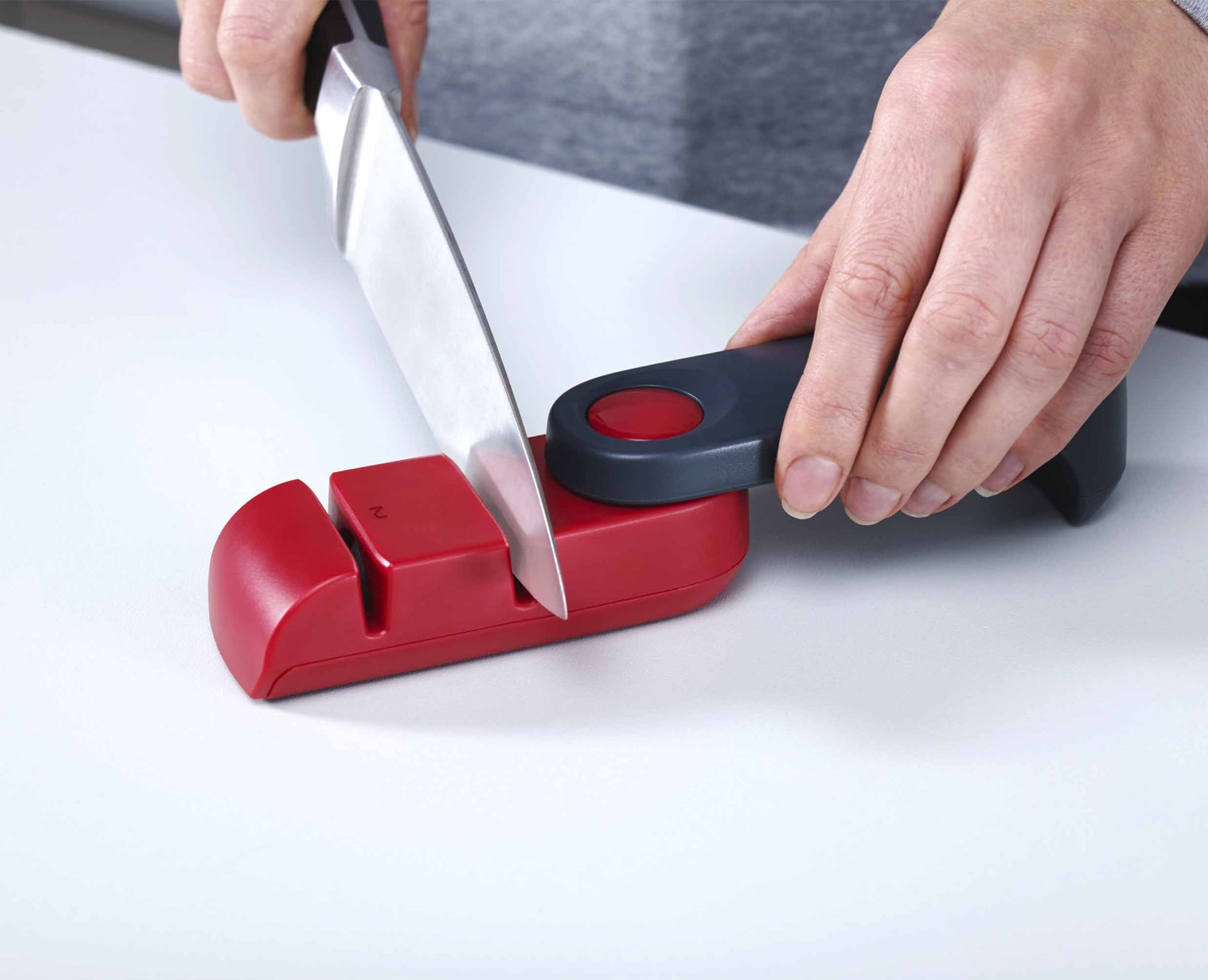 - Easy-grip handle and non-slip feet for added stability when sharpening