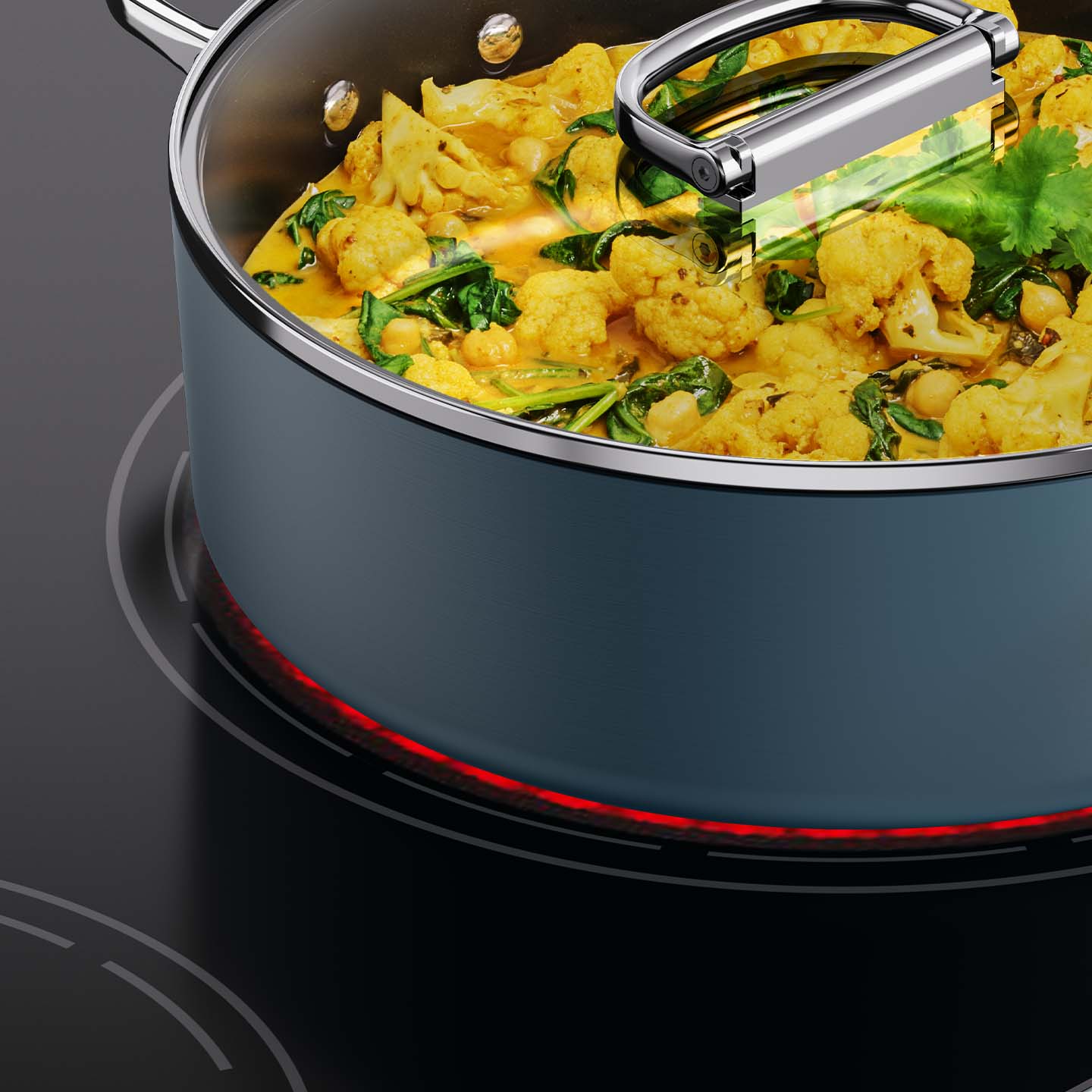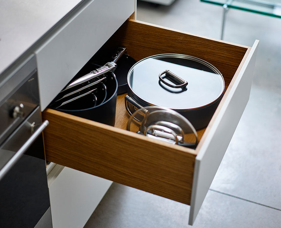 No more chaotic kitchen cupboards, no compromise on usability or performance. Our pioneering SwingLock™ folding handle has been meticulously engineered for durability and easy storage. Space is professional quality cookware, reinvented.