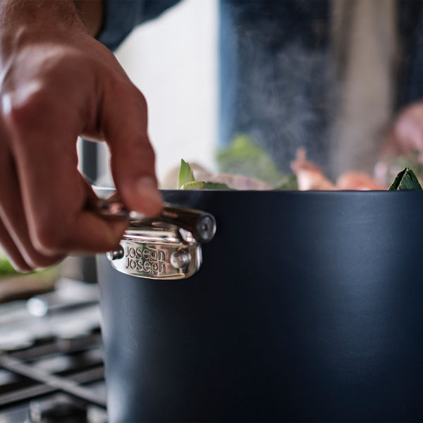 Our pots and pans are made from heavy-gauge aluminium which makes them very durable, corrosion-resistant and great heat distributors. This gives them a premium feel and excellent versatility, despite weighing slightly more.