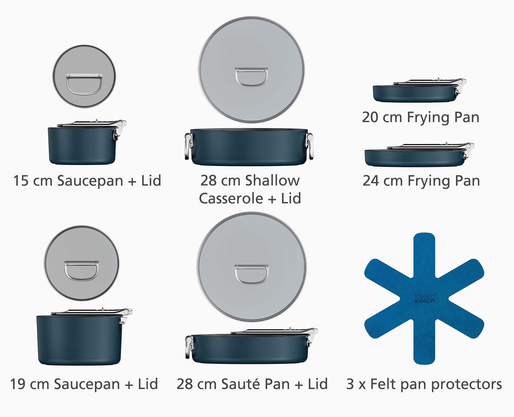 What are the different sizes of saucepans in the Joseph Joseph range?