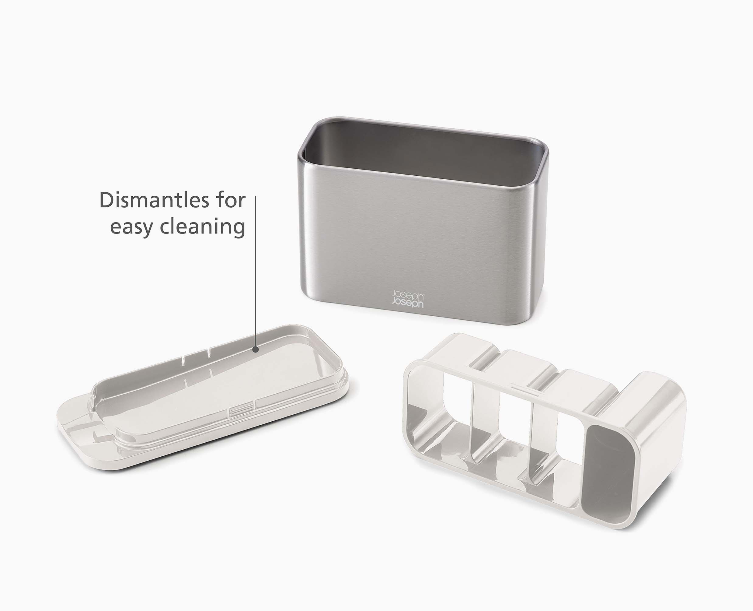 Organise your cutlery as you wash-up with this stylish stainless-steel cutlery drainer. Featuring non-slip feet, integrated draining spout and three compartments designed to make doing the dishes easy.