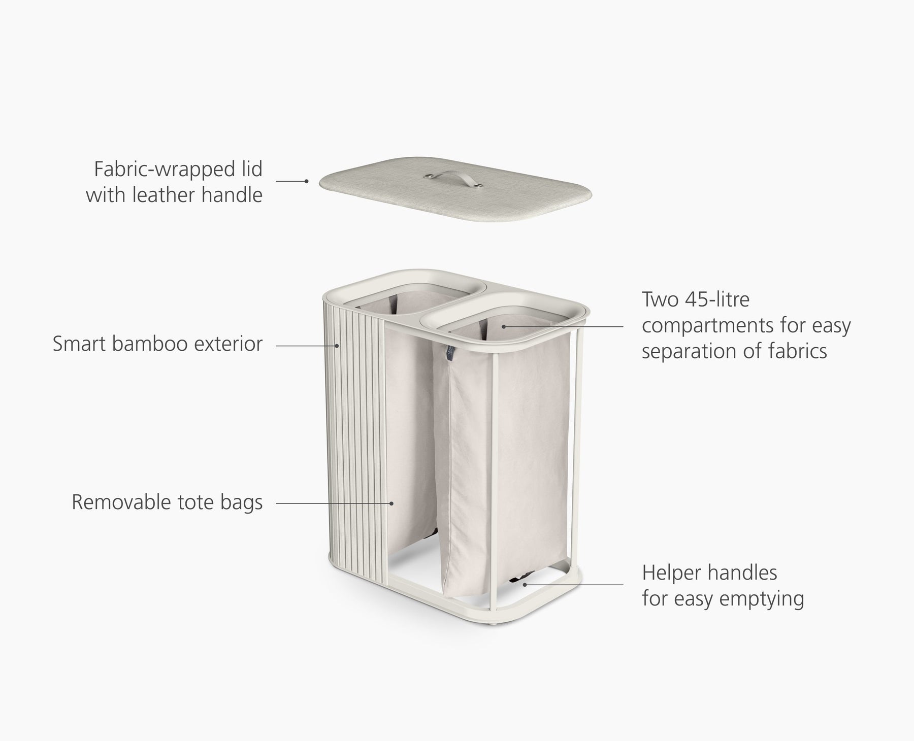 Tota Luxe elevates your everyday laundry experience with style and functionality, from its multiple compartments for easy sorting to the premium bamboo finish.
